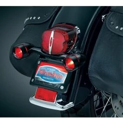 Not only does this kit include streamlined, bullet shaped turn signals, but it also relocates your license plate below the taillight with a built-in light. The bullet shaped turn signals are single circuit, 1156 style, and come equipped with stylish deep-dish bezels and red lenses.