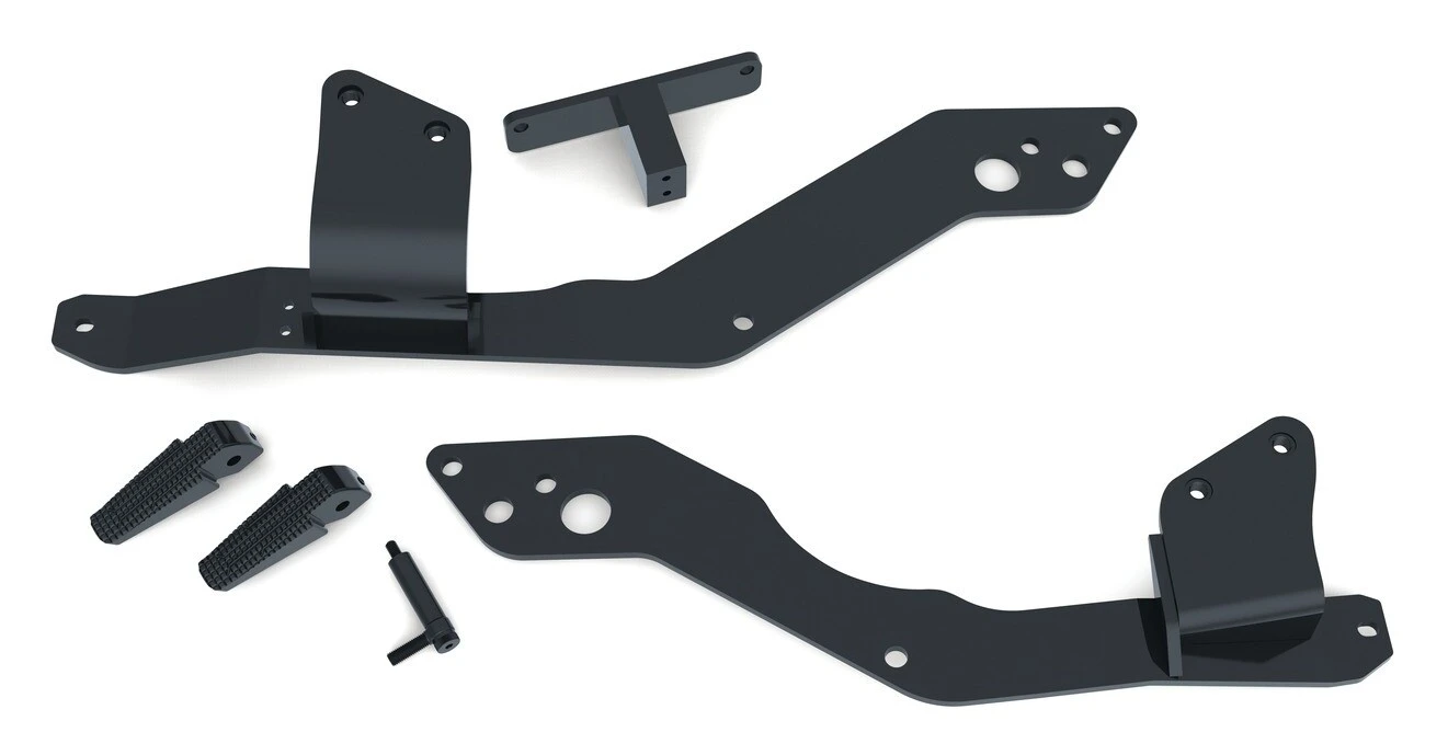 - Relocates factory peg mounts, rear brake master cylinder, brake lever and shift lever