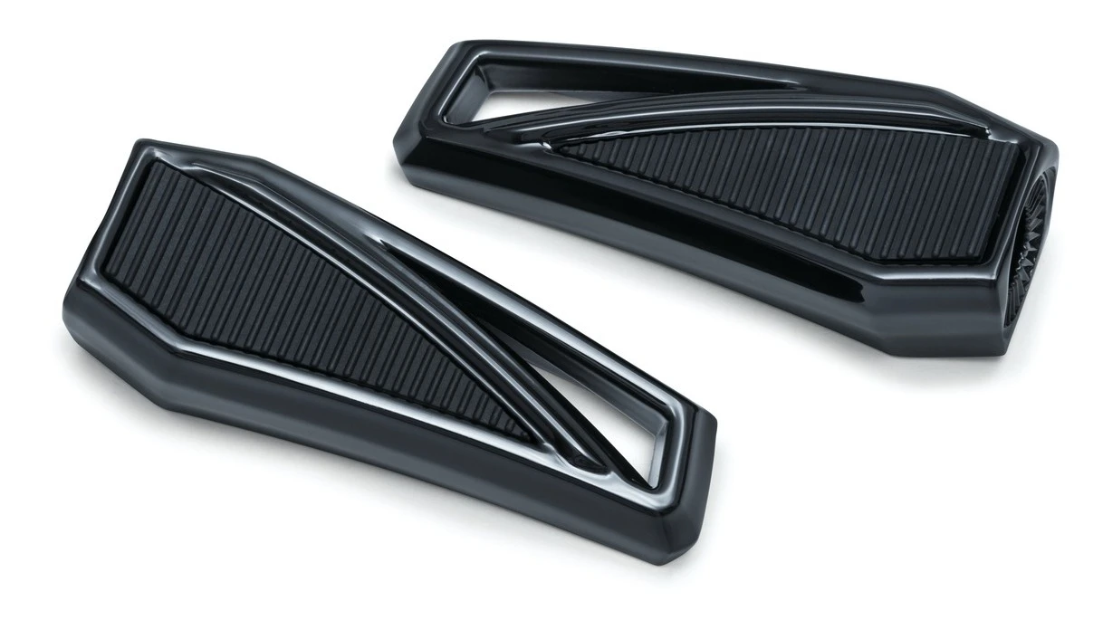 A modern, aggressive design that combines quality aluminum with premium EPDM rubber pads to create a solid foundation for stability, traction and comfort. Features a subtle pass-through design, sharp, sculpted lines and accepts model-specific Splined Adapters for fitment on a wide variety of Indian, H-D, Victory and metric cruisers.