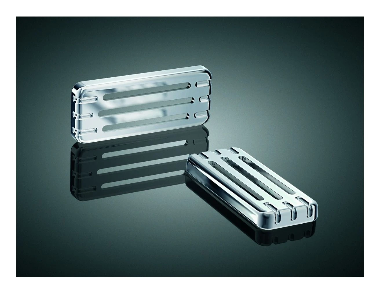 Hook up those unsightly front and rear reflectors on your bike with our louvered chrome covers. Maintains visibility, and also adds a stylized cover in traditional Kuryakyn chrome.