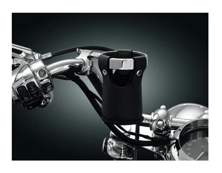 Beverage carrier allows you to update any ring-style Kuryakyn drink holder with this Snap-n-Go drink carrier. Pouch made with easy on/off snap design and is collapsible for storage. Made from durable black PVC with faux leather texture.