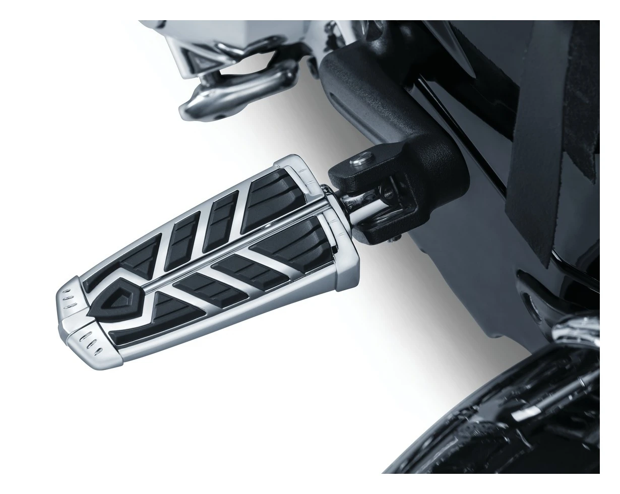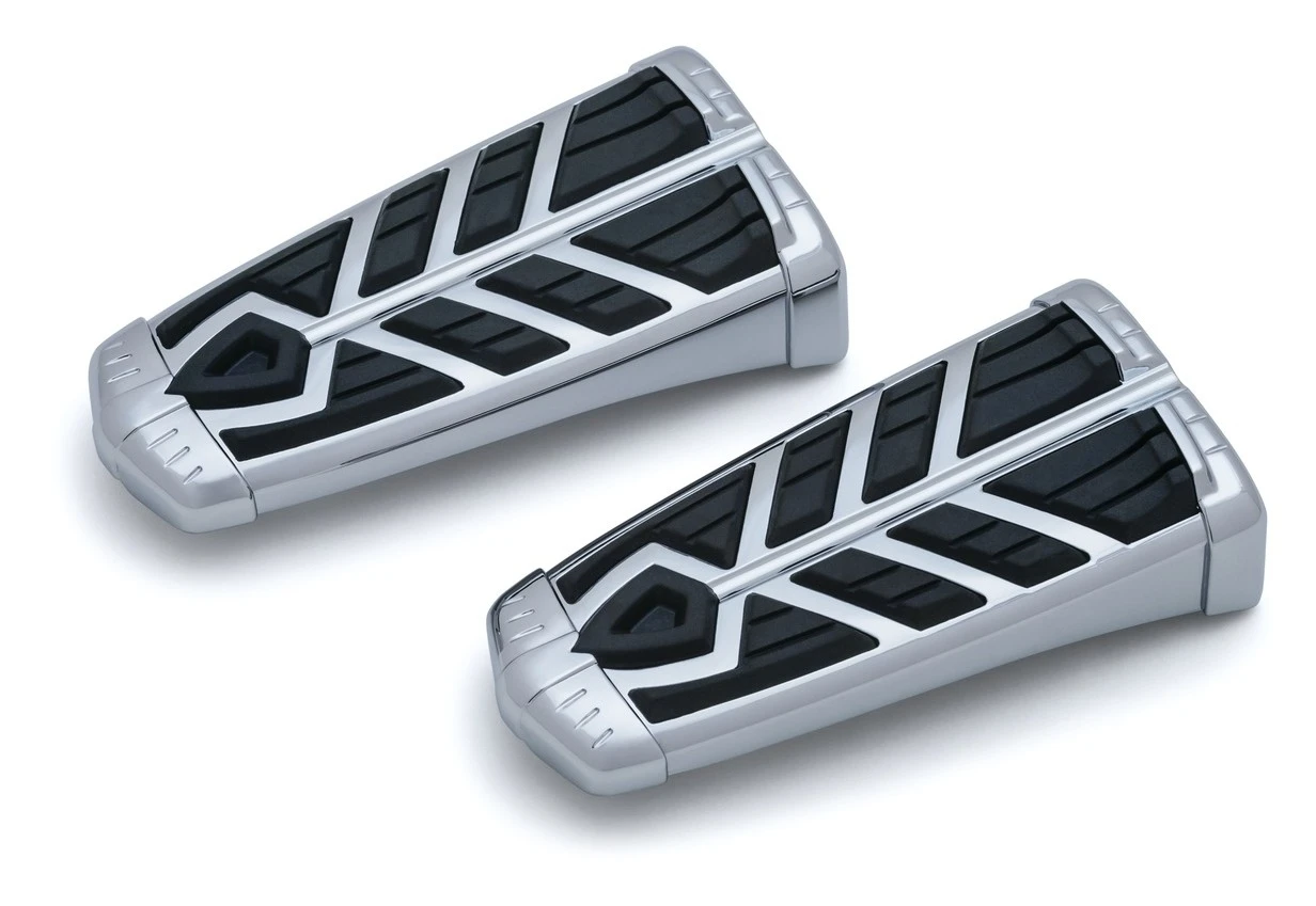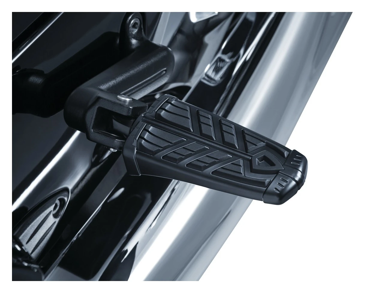 Spear Footpegs feature a unique three-piece design that incorporates aluminum upper and lower castings with premium EPDM rubber form-fitted in the middle. The flattened top surface offers ideal foot placement and support, while the soft rubber inserts deliver solid traction and reduced vibration for comfort on long rides.